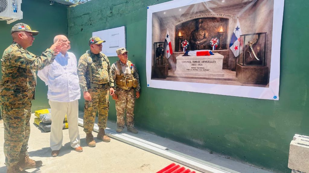 Durante este acto, se colocó una ofrenda floral a la estatua del Coronel Tomás Armuelles, un líder que también defendió la lucha de los panameños en Pueblo Nuevo de Coto. Asimismo, las unidades del Grupo de Reacción Inmediata Motorizado (GRIM), efectuaron las balas de salvas, con motivo de respeto y honor. Finalmente, familiares del Coronel Tomás Armuelles, entregaron al Comisionado Héctor De Sedas, Subdirector General del SENAFRONT, los restos y pertenencias que en su momento utilizó el Coronel Armuelles.